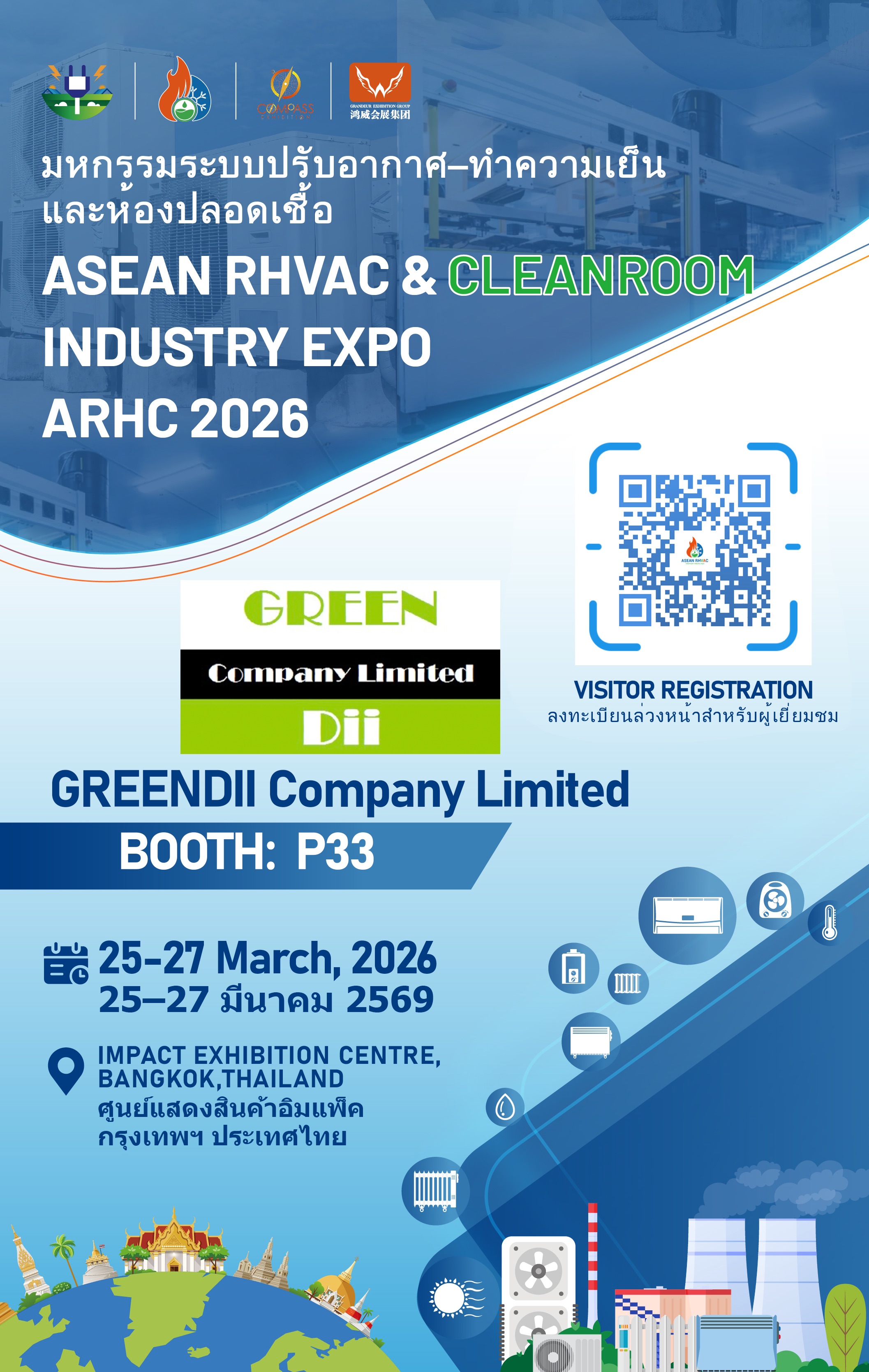 Visit Booth P33 and experience total cleanroom integration by Greendii. Join us at ARHC 2026, where global cleanroom, HVACR, and clean technology leaders gather to shape the future of contamination control.