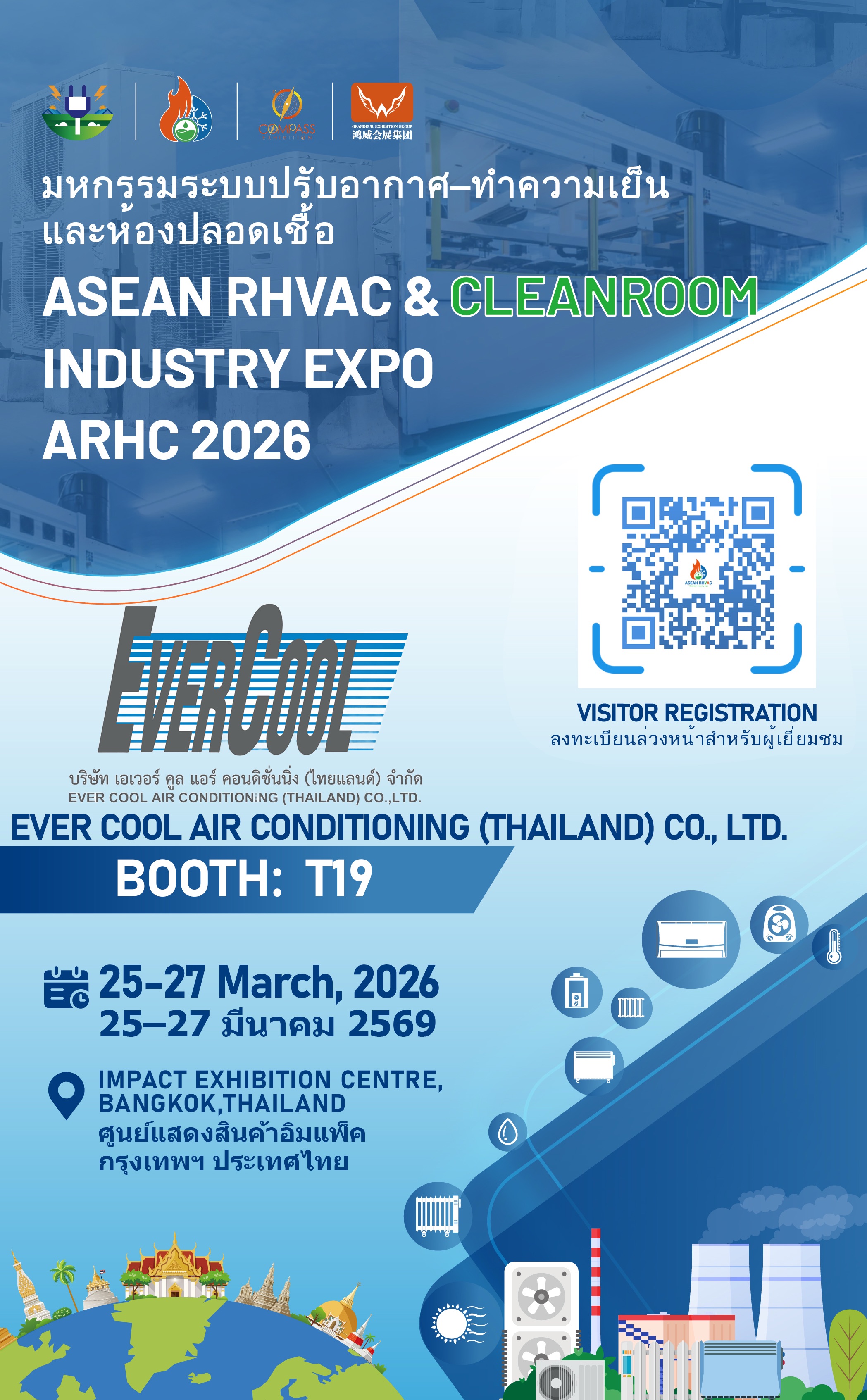 We warmly welcome industry professionals to meet Ever Cool Air Conditioning (Thailand) Co., Ltd. - Booth No. T19 - in person at our upcoming exhibition, your ideal opportunity to explore their latest solutions and explore business partnerships.