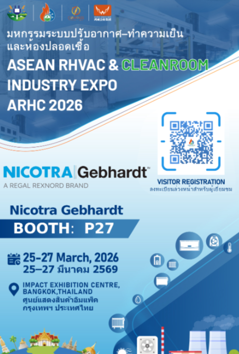 Meet Nicotra Gebhardt at ARHC-ASEAN RHVAC & Cleanroom Industry Expo. Explore how its high-performance fan systems and engineered air movement solutions support efficient, reliable, and sustainable HVAC and industrial applications across the region.