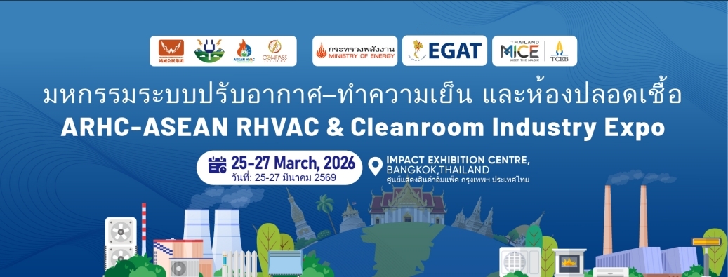Supported by the Thailand Convention and Exhibition Bureau (TCEB) and leading international industry associations—including Indoor Air Quality Association Thailand (IAQ Association Thailand), Contamination Control Society Thailand (CCS Thailand), Institute of Environmental Sciences and Technology(IEST), Thai IoT association, Council of Engineers, Thailand, ESG Association of Malaysia, Institute of Refrigeration (IOR), Guangxi Association of Refrigeration, Guizhou Industry Association of Medical Construction(GIAMC), Shenzhen Biological & Industrial Cleanroom Association, Guangdong Refrigeration Industry Association, Thai Intelligent Transport Systems Association (ITS Thailand), Specialists Trade Alliance of Singapore (STAS), Contamination Control Society of India (CCSI), Malaysian Air-Conditioning & Refrigeration Association (MACRA), The Society of Air-conditioning and Refrigerating Engineers of Korea (SAREK), Brazilian Association of Refrigeration, Air Conditioning, Ventilation and Heating (ABRAVA), and Air Movement and Control Association (AMCA), the Russian HVAC Society (ABOK), the Refrigeration and Air-Conditioning Trades Association (RATA), European Industry Association (Eurovent) and Association of Engineers for Microcontamination Control (ASENMCO)—the ASEAN RHVAC & Cleanroom Industry Expo 2026 is set to make a grand return from March 25-27 at the IMPACT Exhibition Centre, Bangkok, Thailand.