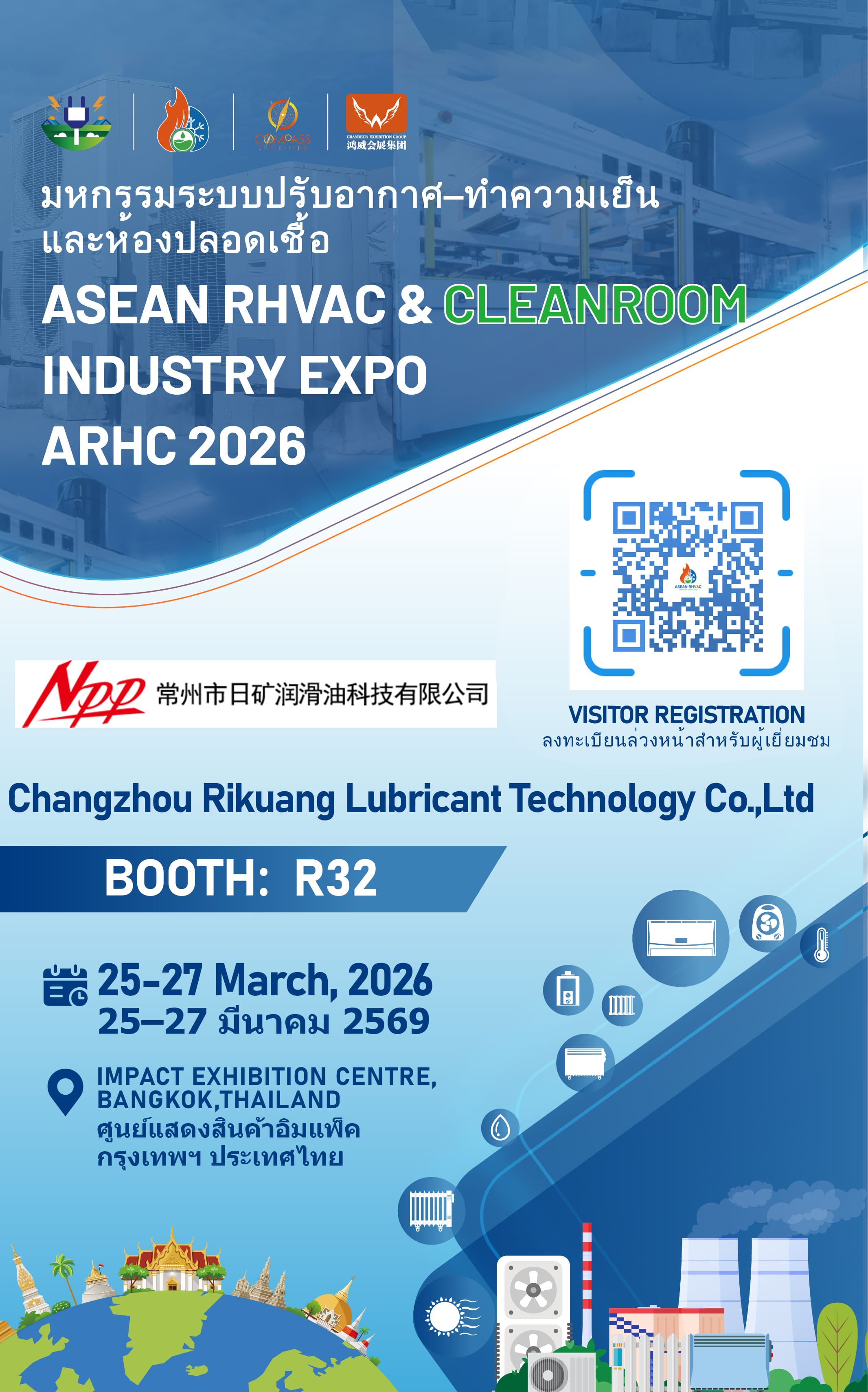 We are excited to welcome the new exhibitor - Changzhou Rikuang Lubricant Technology Co.,Ltd to make its first debut at ARHC - ASEAN RHVAC & Cleanroom Industry Expo 2026.