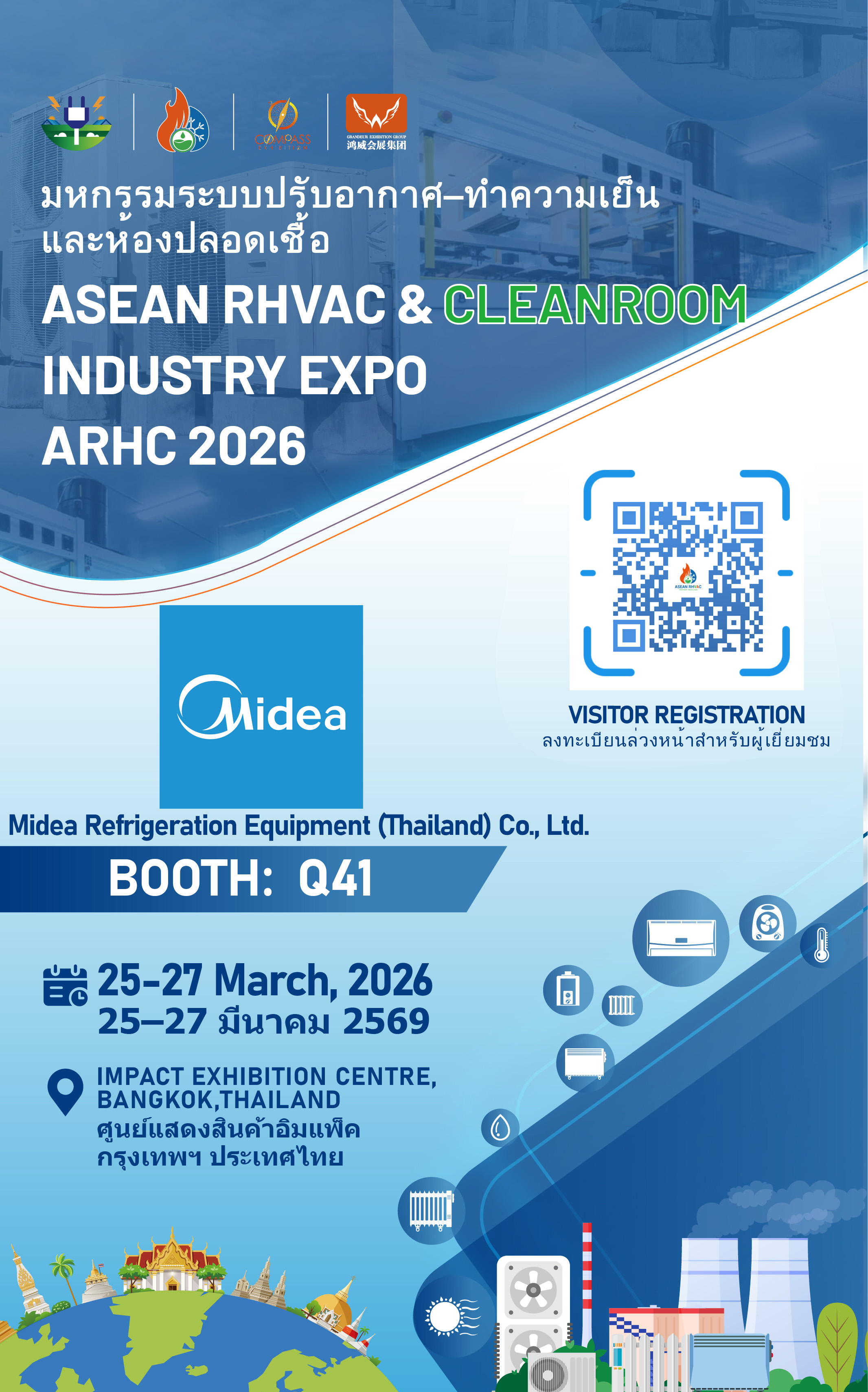 Global HVACR industry leader - Midea Refrigeration Equipment (Thailand) Co., Ltd. will be exhibiting at the ASEAN RHVAC & Cleanroom Industry Expo 2026.